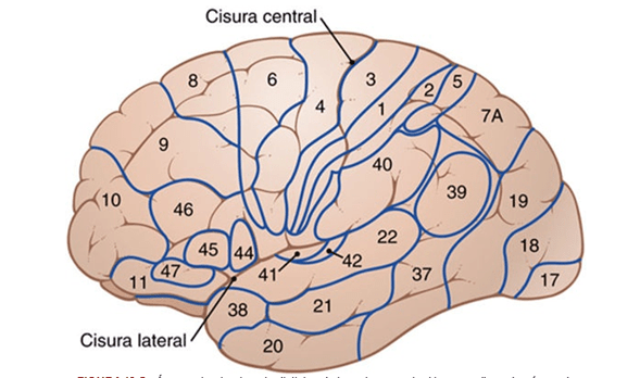 Área de Broca un área premotora designada con la expresión «formación de las palabras» que se halla justo delante de la corteza motora primaria e inmediatamente por encima del surco lateral. Su lesión no impide que una persona vocalice, pero hace imposible que emita palabras completas en vez de sonidos descoordinados o algún término sencillo esporádico.