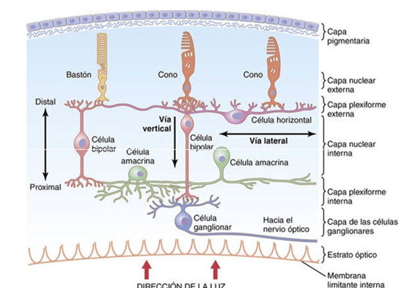 La mácula se encuentra cubierta por una capa gelatinosa en la que están enterrados muchos pequeños cristales de carbonato cálcico llamados otolitos o estatoconias.